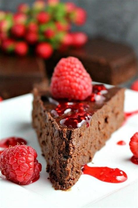 So there you have it – a decadent, flourless chocolate cake, perfect for any occasion, from a quiet evening in to a sophisticated dinner party. This recipe, as you've hopefully discovered, is surprisingly straightforward despite the richness of the final product. Remember that the quality of your chocolate truly makes a difference here; don't be afraid to splurge on a good bar – you'll taste the difference in the final result. Moreover, paying attention to the melting process is key to achieving that perfectly smooth batter. Work slowly and steadily, ensuring the chocolate is fully melted and combined with the butter before adding the eggs. Finally, don't overbake! It's much better to slightly underbake a flourless cake than to overbake it, as overbaking can lead to a dry, crumbly texture. A toothpick inserted into the center should come out with a few moist crumbs clinging to it, rather than being completely clean. This indicates a perfectly moist and fudgy interior. In addition, the cooling process is also important; allow the cake to cool completely in the pan before attempting to remove it, otherwise it may crumble. And of course, don't forget to enjoy the delicious raspberry sauce. It's the perfect complement to the richness of the chocolate, offering a delightful contrast in texture and flavor. To make your experience even richer, you could experiment with other berries or even a different fruit sauce entirely. Ultimately, this recipe is your canvas - feel free to get creative!